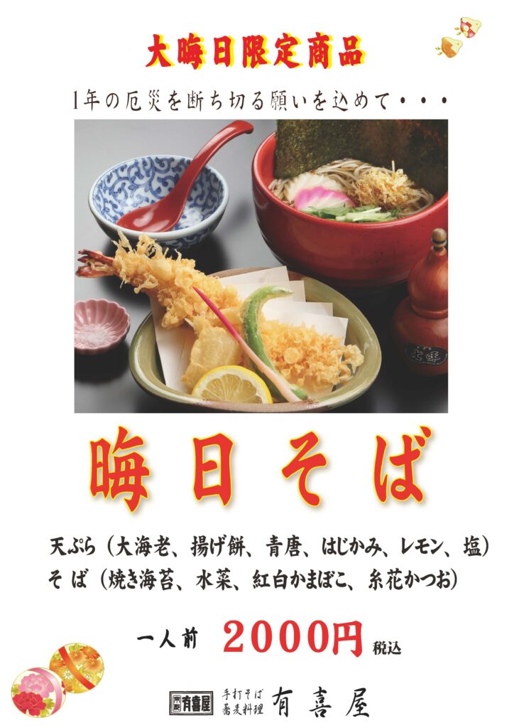 ● 期間中は年越しそば・季節の一品を中心とした特別メニューで営業いたします。