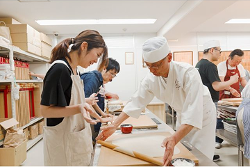 そばのこね方から丁寧に教えますので、中学生から体験いただけます。